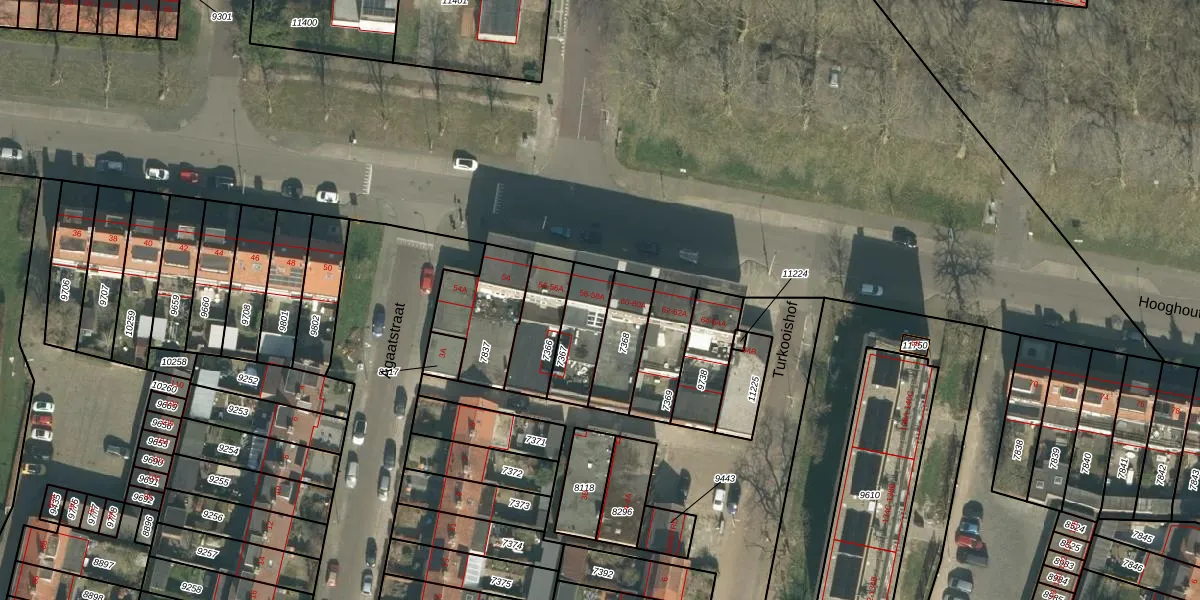 Het perceel waarop Hooghout 58-A staat heeft een oppervlakte van 161 m². Dit is een middelgroot perceel. De perceeloppervlakte wordt geregistreerd door het Kadaster. Gedetailleerde informatie over de maten van dit perceel kunt u vinden in het rapport Kadastrale kaart met maatvoering van Hooghout 58-A.