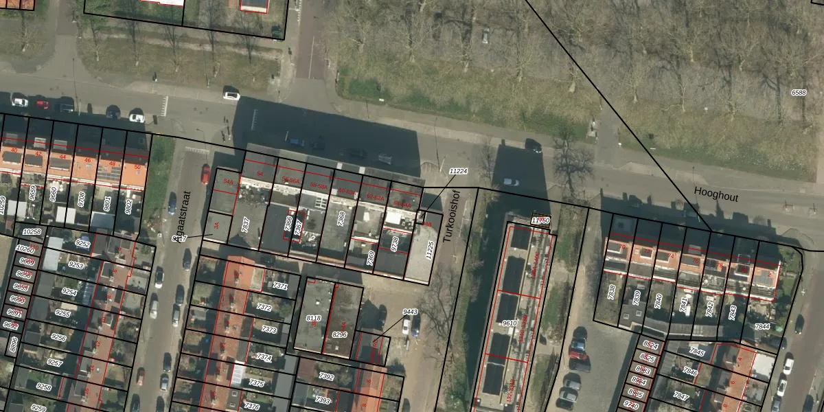 Hooghout 64-A is gelegen op kadastraal perceel BDA00D9738. Deze kadastrale aanduiding is uniek en wordt gebruikt door het Kadaster om eigendomsrechten en andere zakelijke rechten vast te leggen. Het perceel maakt onderdeel uit van de kadastrale gemeente Breda.