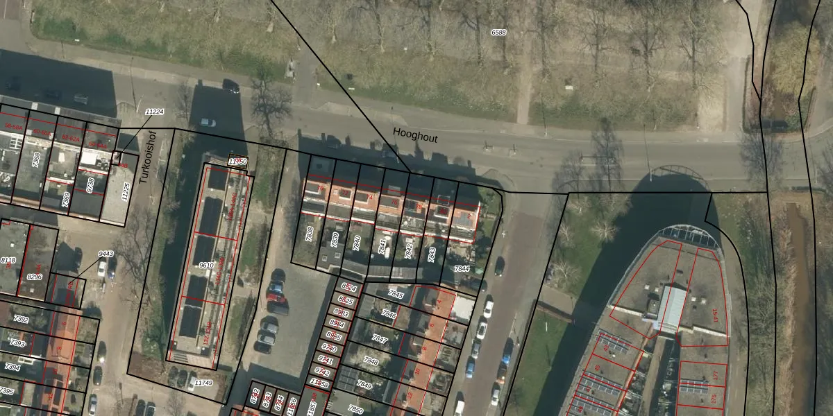 Het perceel waarop Hooghout 78 staat heeft een oppervlakte van 157 m². Dit is een middelgroot perceel. De perceeloppervlakte wordt geregistreerd door het Kadaster. Gedetailleerde informatie over de maten van dit perceel kunt u vinden in het rapport Kadastrale kaart met maatvoering van Hooghout 78.