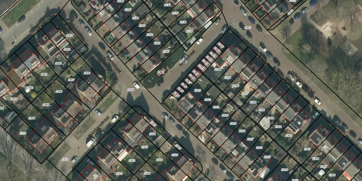 Het perceel waarop Hornstraat 41 staat heeft een oppervlakte van 19 m². Dit is een klein perceel. De perceeloppervlakte wordt geregistreerd door het Kadaster. Gedetailleerde informatie over de maten van dit perceel kunt u vinden in het rapport Kadastrale kaart met maatvoering van Hornstraat 41.