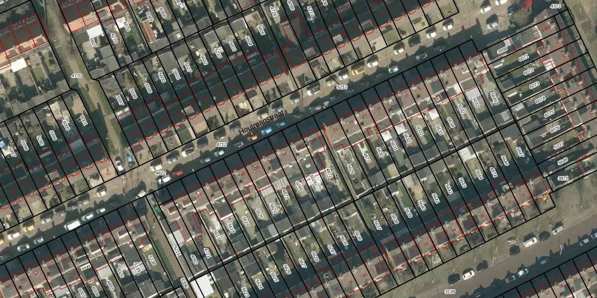 Het perceel waarop Houtmanstraat 25 staat heeft een oppervlakte van 167 m². Dit is een middelgroot perceel. De perceeloppervlakte wordt geregistreerd door het Kadaster. Gedetailleerde informatie over de maten van dit perceel kunt u vinden in het rapport Kadastrale kaart met maatvoering van Houtmanstraat 25.