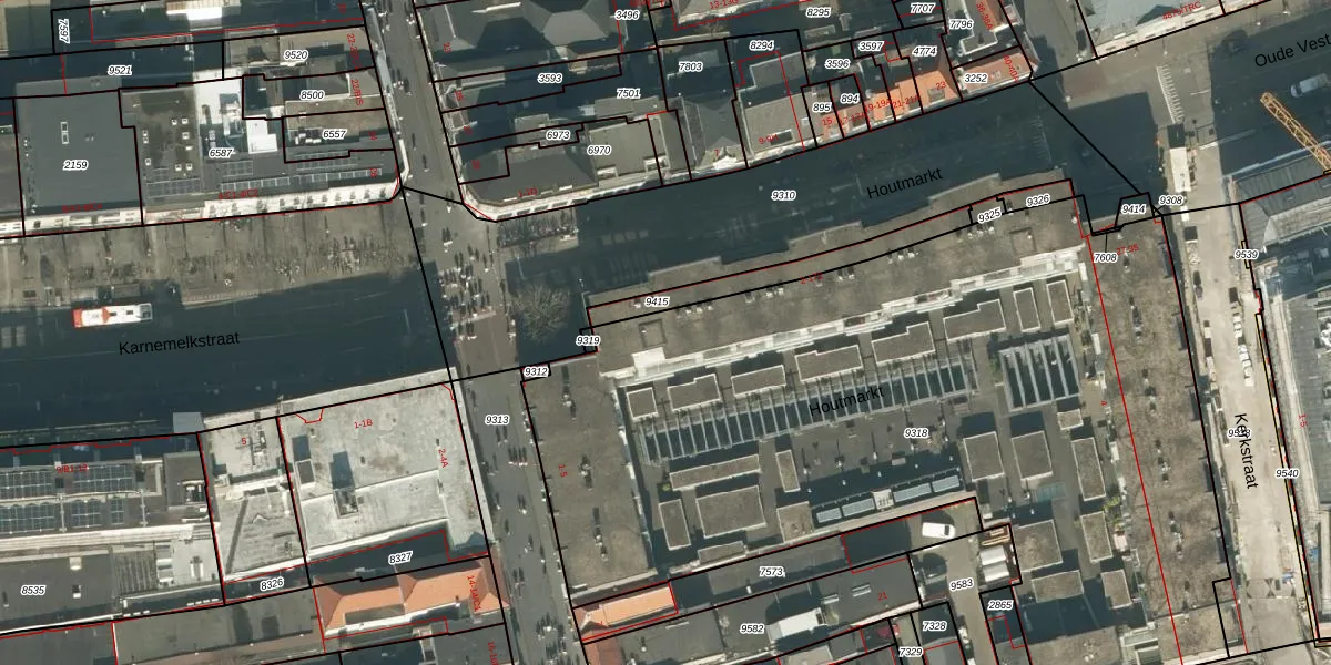 Het perceel waarop Houtmarkt 20 staat heeft een oppervlakte van 4818 m². Dit is een zeer groot perceel. De perceeloppervlakte wordt geregistreerd door het Kadaster. Gedetailleerde informatie over de maten van dit perceel kunt u vinden in het rapport Kadastrale kaart met maatvoering van Houtmarkt 20.