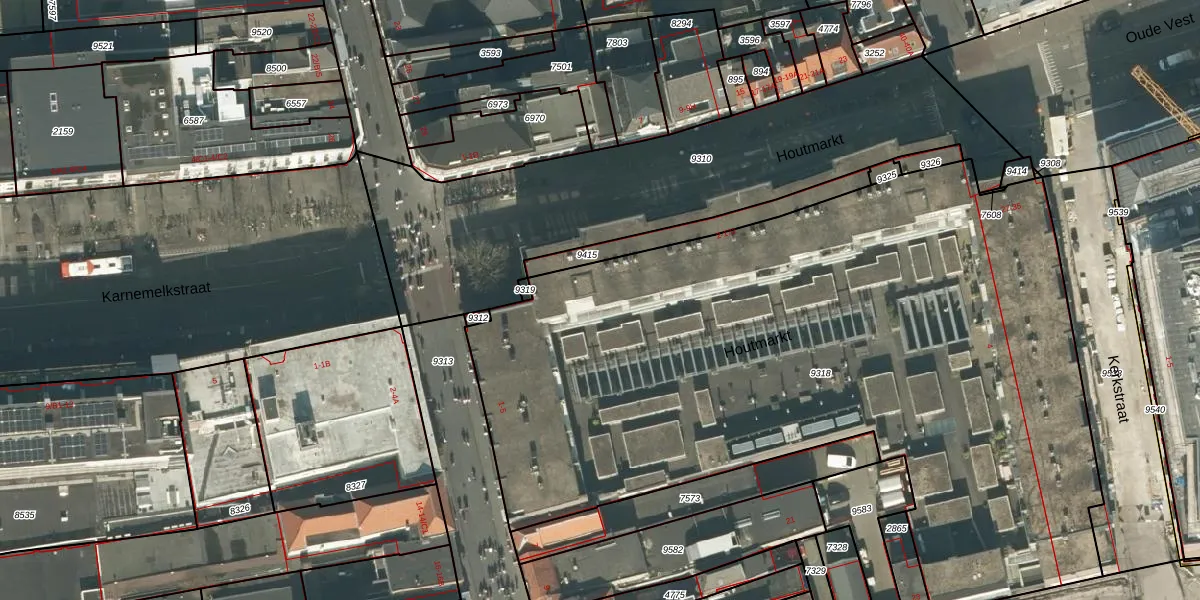 Het perceel waarop Houtmarkt 22 staat heeft een oppervlakte van 4818 m². Dit is een zeer groot perceel. De perceeloppervlakte wordt geregistreerd door het Kadaster. Gedetailleerde informatie over de maten van dit perceel kunt u vinden in het rapport Kadastrale kaart met maatvoering van Houtmarkt 22.