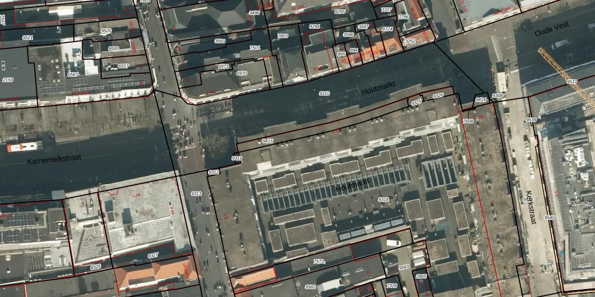 Het perceel waarop Houtmarkt 38 staat heeft een oppervlakte van 4818 m². Dit is een zeer groot perceel. De perceeloppervlakte wordt geregistreerd door het Kadaster. Gedetailleerde informatie over de maten van dit perceel kunt u vinden in het rapport Kadastrale kaart met maatvoering van Houtmarkt 38.