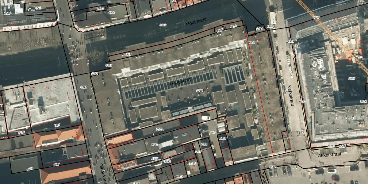 Het perceel waarop Houtmarkt 45 staat heeft een oppervlakte van 4818 m². Dit is een zeer groot perceel. De perceeloppervlakte wordt geregistreerd door het Kadaster. Gedetailleerde informatie over de maten van dit perceel kunt u vinden in het rapport Kadastrale kaart met maatvoering van Houtmarkt 45.