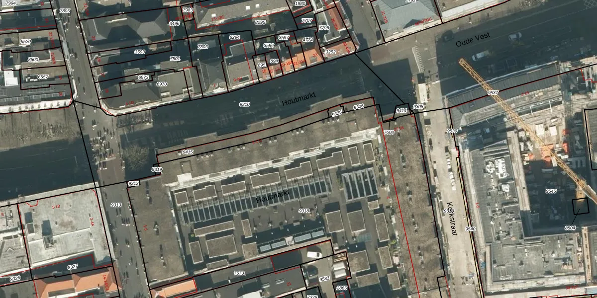 Het perceel waarop Houtmarkt 94 staat heeft een oppervlakte van 4818 m². Dit is een zeer groot perceel. De perceeloppervlakte wordt geregistreerd door het Kadaster. Gedetailleerde informatie over de maten van dit perceel kunt u vinden in het rapport Kadastrale kaart met maatvoering van Houtmarkt 94.