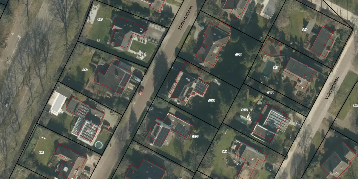 Gebruik de zoekbalk of klik op een perceel voor informatie over de adressen binnen dit perceel.