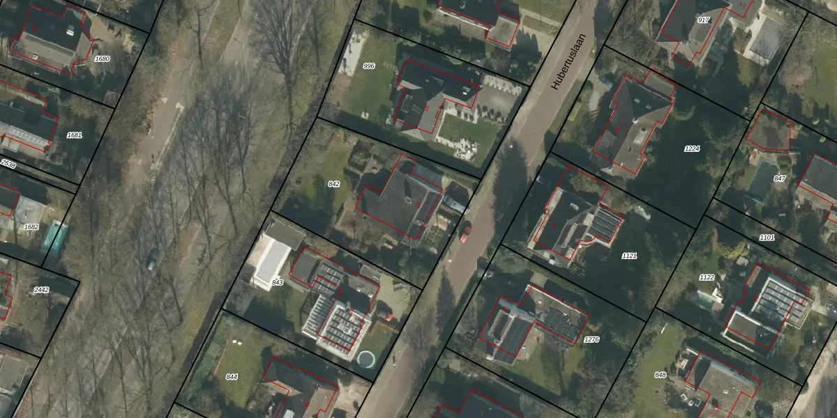 Het perceel waarop Hubertuslaan 18 staat heeft een oppervlakte van 1212 m². Dit is een zeer groot perceel. De perceeloppervlakte wordt geregistreerd door het Kadaster. Gedetailleerde informatie over de maten van dit perceel kunt u vinden in het rapport Kadastrale kaart met maatvoering van Hubertuslaan 18.
