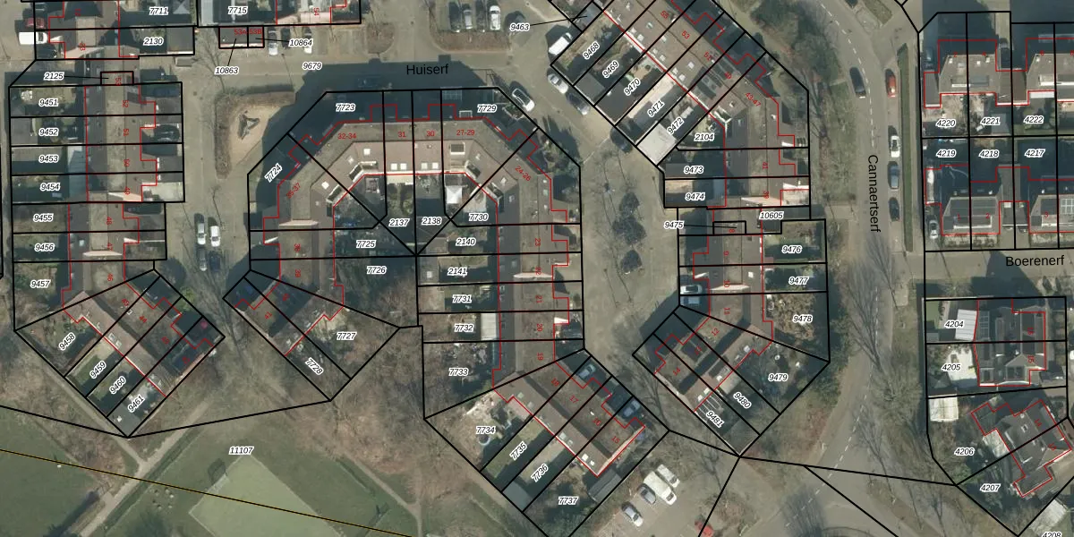 Het perceel waarop Huiserf 22 staat heeft een oppervlakte van 168 m². Dit is een middelgroot perceel. De perceeloppervlakte wordt geregistreerd door het Kadaster. Gedetailleerde informatie over de maten van dit perceel kunt u vinden in het rapport Kadastrale kaart met maatvoering van Huiserf 22.