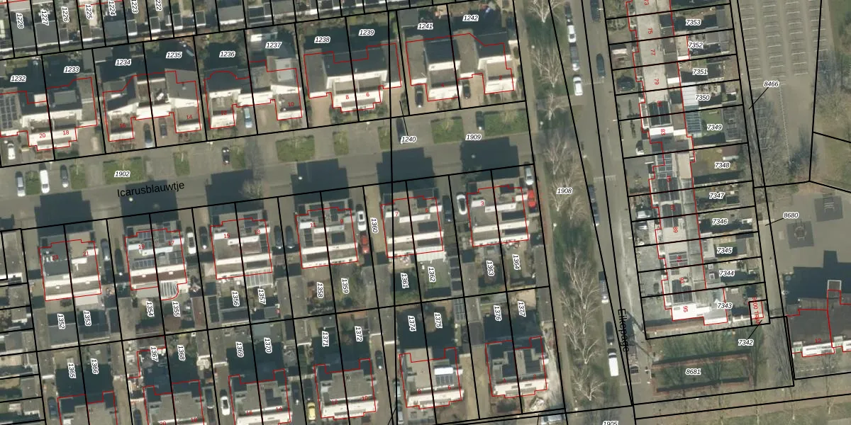 Gebruik de zoekbalk of klik op een perceel voor informatie over de adressen binnen dit perceel.