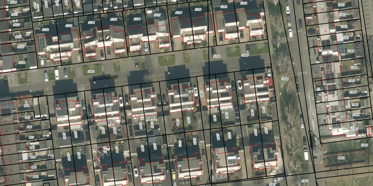 Gebruik de zoekbalk of klik op een perceel voor informatie over de adressen binnen dit perceel.