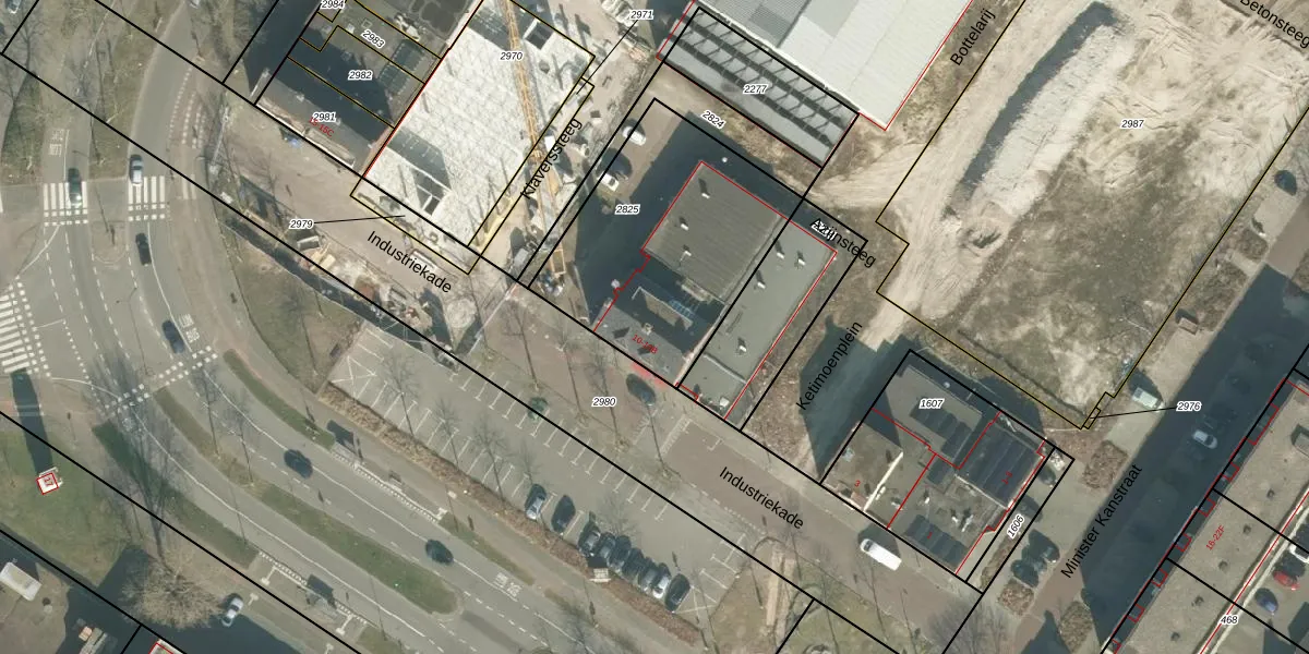 Het perceel waarop Industriekade 10-B staat heeft een oppervlakte van 965 m². Dit is een groot perceel. De perceeloppervlakte wordt geregistreerd door het Kadaster. Gedetailleerde informatie over de maten van dit perceel kunt u vinden in het rapport Kadastrale kaart met maatvoering van Industriekade 10-B.