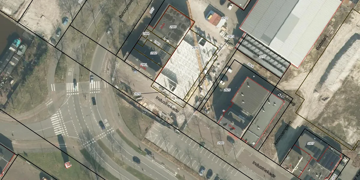 Industriekade 13-G2 is gelegen op kadastraal perceel BDA00C2970. Deze kadastrale aanduiding is uniek en wordt gebruikt door het Kadaster om eigendomsrechten en andere zakelijke rechten vast te leggen. Het perceel maakt onderdeel uit van de kadastrale gemeente Breda.