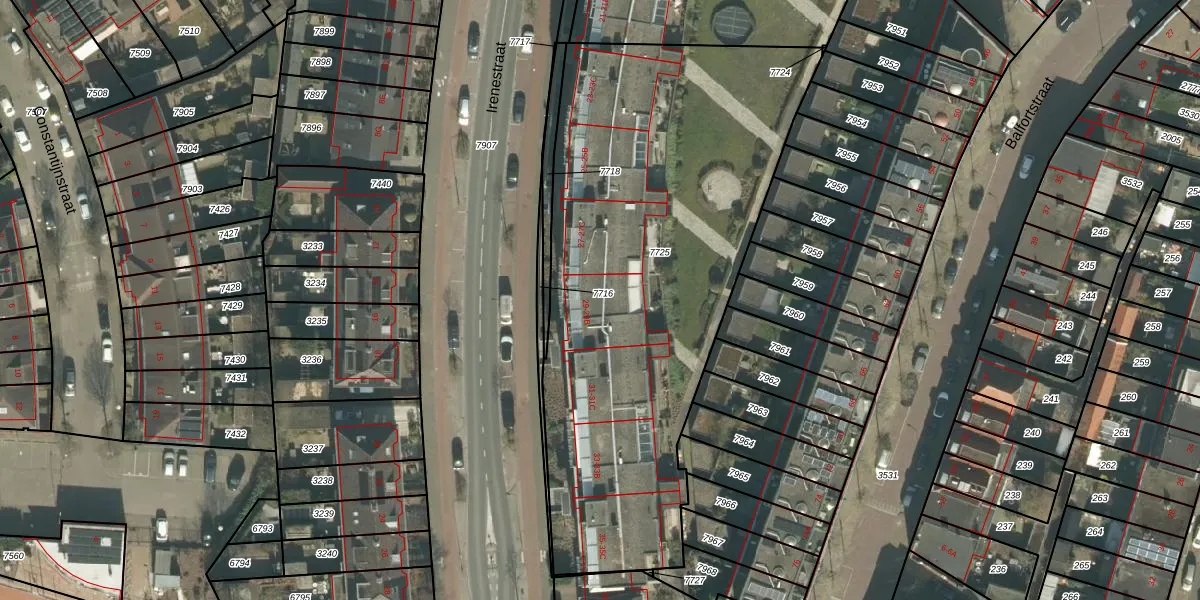 Het perceel waarop Irenestraat 29-A staat heeft een oppervlakte van 2707 m². Dit is een zeer groot perceel. De perceeloppervlakte wordt geregistreerd door het Kadaster. Gedetailleerde informatie over de maten van dit perceel kunt u vinden in het rapport Kadastrale kaart met maatvoering van Irenestraat 29-A.
