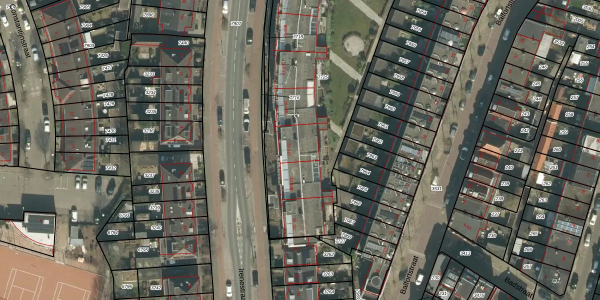 Het perceel waarop Irenestraat 31-C staat heeft een oppervlakte van 2707 m². Dit is een zeer groot perceel. De perceeloppervlakte wordt geregistreerd door het Kadaster. Gedetailleerde informatie over de maten van dit perceel kunt u vinden in het rapport Kadastrale kaart met maatvoering van Irenestraat 31-C.