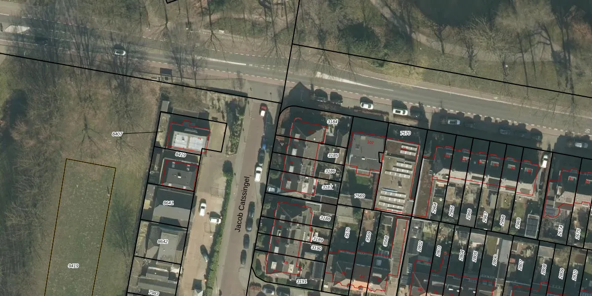 Jacob Catssingel 1 is gelegen op kadastraal perceel BDA00E3185. Deze kadastrale aanduiding is uniek en wordt gebruikt door het Kadaster om eigendomsrechten en andere zakelijke rechten vast te leggen. Het perceel maakt onderdeel uit van de kadastrale gemeente Breda.