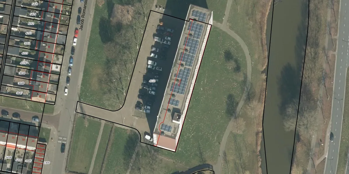 Jacob Romanstraat 122 is gelegen op kadastraal perceel BDA00G4112. Deze kadastrale aanduiding is uniek en wordt gebruikt door het Kadaster om eigendomsrechten en andere zakelijke rechten vast te leggen. Het perceel maakt onderdeel uit van de kadastrale gemeente Breda.