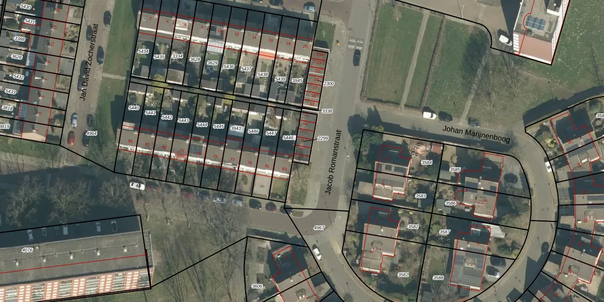 Het perceel waarop Jacob Romanstraat 3 staat heeft een oppervlakte van 91 m². Dit is een klein perceel. De perceeloppervlakte wordt geregistreerd door het Kadaster. Gedetailleerde informatie over de maten van dit perceel kunt u vinden in het rapport Kadastrale kaart met maatvoering van Jacob Romanstraat 3.