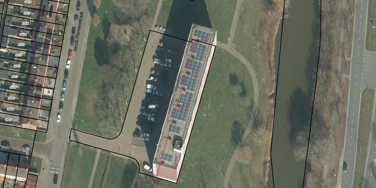 Jacob Romanstraat 80 is gelegen op kadastraal perceel BDA00G4112. Deze kadastrale aanduiding is uniek en wordt gebruikt door het Kadaster om eigendomsrechten en andere zakelijke rechten vast te leggen. Het perceel maakt onderdeel uit van de kadastrale gemeente Breda.