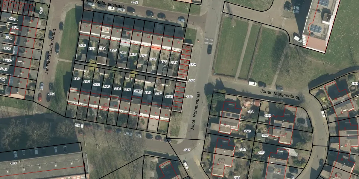 Het perceel waarop Jacob Romanstraat 9 staat heeft een oppervlakte van 91 m². Dit is een klein perceel. De perceeloppervlakte wordt geregistreerd door het Kadaster. Gedetailleerde informatie over de maten van dit perceel kunt u vinden in het rapport Kadastrale kaart met maatvoering van Jacob Romanstraat 9.