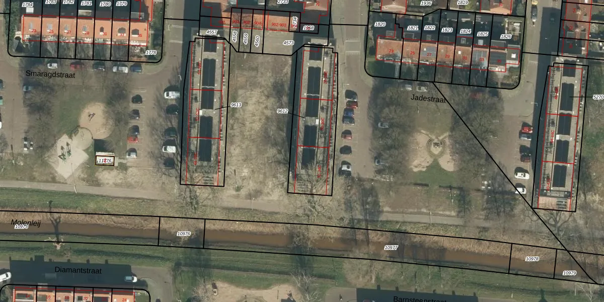 Jadestraat 32-C is gelegen op kadastraal perceel BDA00D9612. Deze kadastrale aanduiding is uniek en wordt gebruikt door het Kadaster om eigendomsrechten en andere zakelijke rechten vast te leggen. Het perceel maakt onderdeel uit van de kadastrale gemeente Breda.