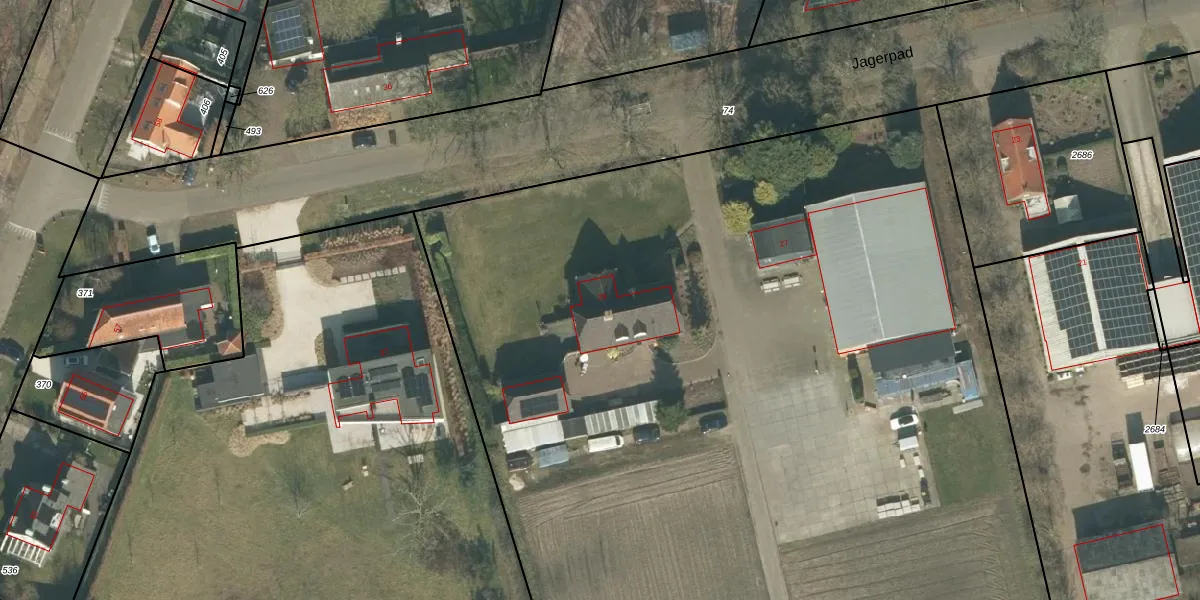 Het perceel waarop Jagerpad 29 staat heeft een oppervlakte van 2,1 ha. Dit is een zeer groot perceel. De perceeloppervlakte wordt geregistreerd door het Kadaster. Gedetailleerde informatie over de maten van dit perceel kunt u vinden in het rapport Kadastrale kaart met maatvoering van Jagerpad 29.