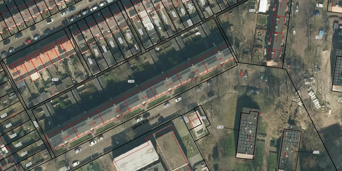 Jakob Edelstraat 12-B is gelegen op kadastraal perceel PCH00I3284. Deze kadastrale aanduiding is uniek en wordt gebruikt door het Kadaster om eigendomsrechten en andere zakelijke rechten vast te leggen. Het perceel maakt onderdeel uit van de kadastrale gemeente Princenhage.