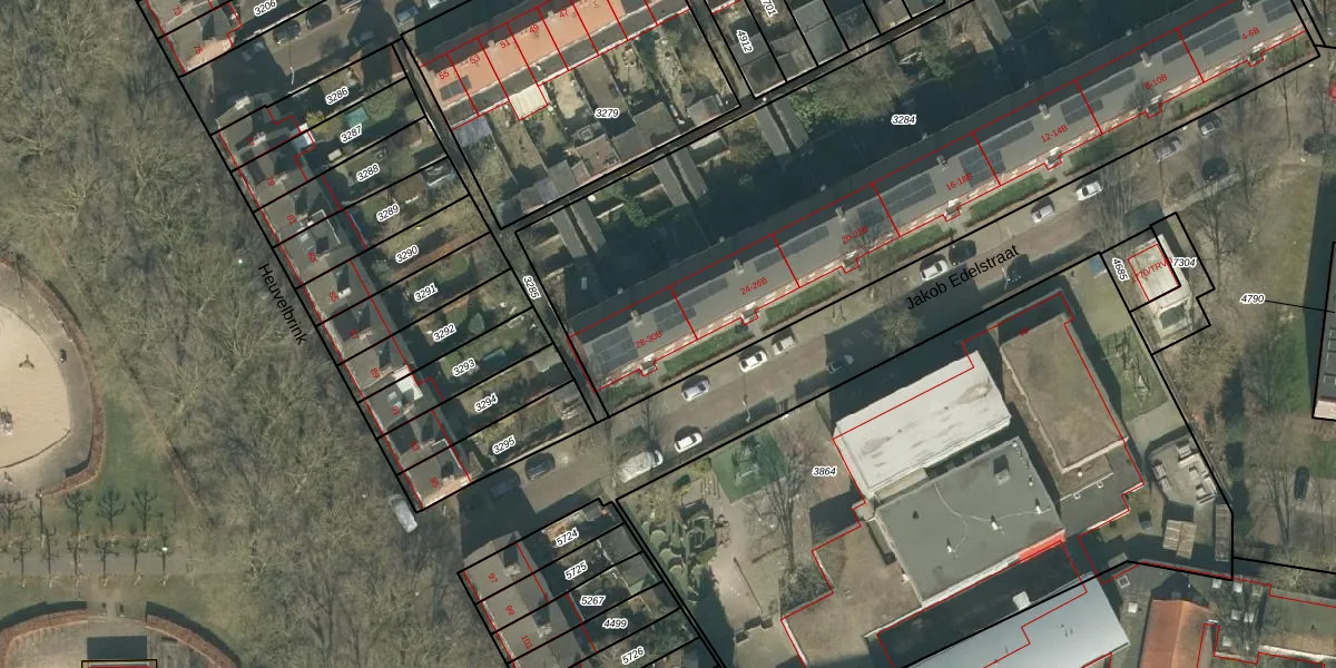 Het perceel waarop Jakob Edelstraat 28-A staat heeft een oppervlakte van 3685 m². Dit is een zeer groot perceel. De perceeloppervlakte wordt geregistreerd door het Kadaster. Gedetailleerde informatie over de maten van dit perceel kunt u vinden in het rapport Kadastrale kaart met maatvoering van Jakob Edelstraat 28-A.