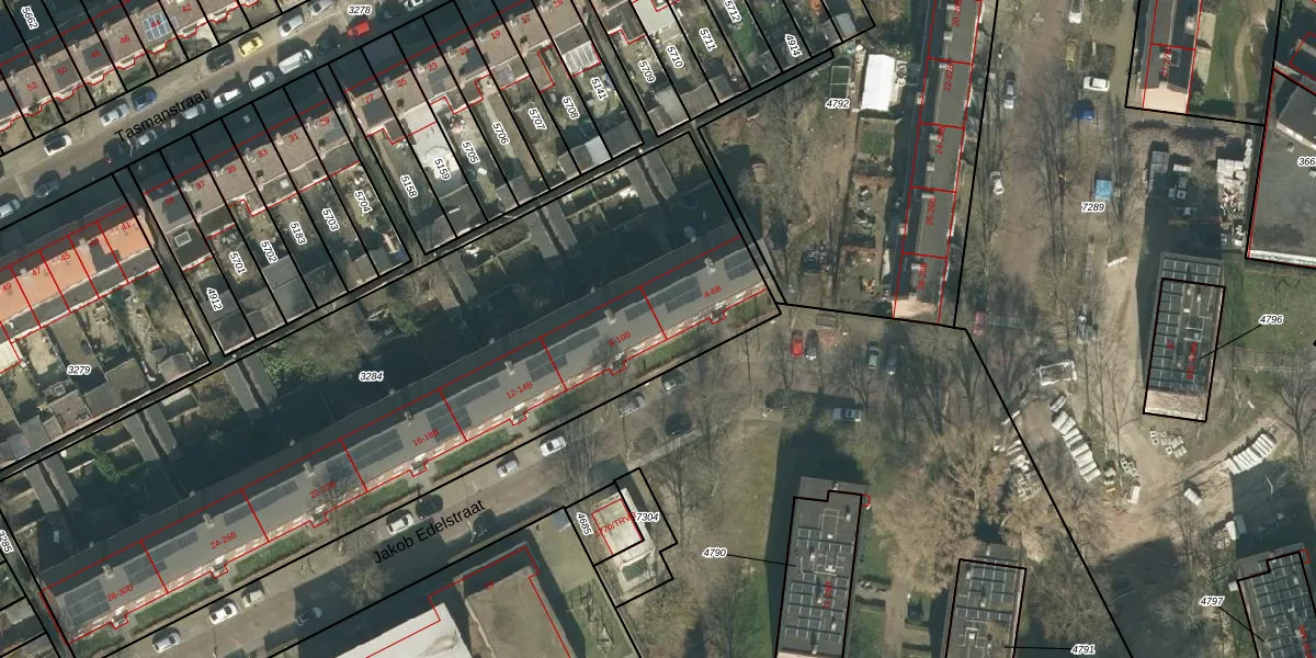 Het perceel waarop Jakob Edelstraat 8 staat heeft een oppervlakte van 3685 m². Dit is een zeer groot perceel. De perceeloppervlakte wordt geregistreerd door het Kadaster. Gedetailleerde informatie over de maten van dit perceel kunt u vinden in het rapport Kadastrale kaart met maatvoering van Jakob Edelstraat 8.