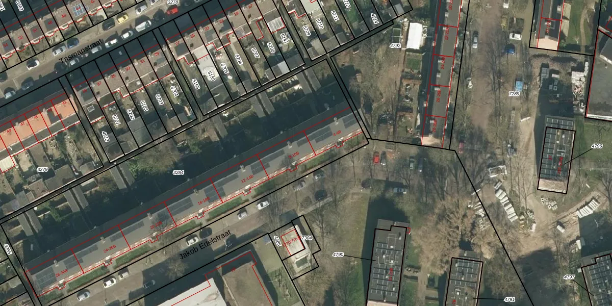 Het perceel waarop Jakob Edelstraat 8-A staat heeft een oppervlakte van 3685 m². Dit is een zeer groot perceel. De perceeloppervlakte wordt geregistreerd door het Kadaster. Gedetailleerde informatie over de maten van dit perceel kunt u vinden in het rapport Kadastrale kaart met maatvoering van Jakob Edelstraat 8-A.