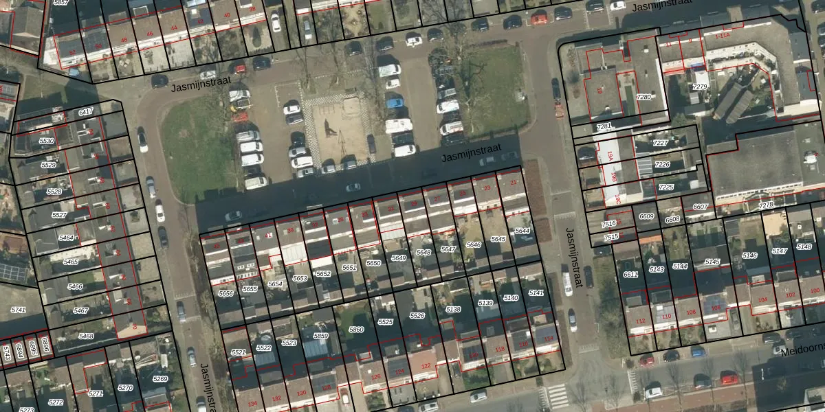 Het perceel waarop Jasmijnstraat 29 staat heeft een oppervlakte van 143 m². Dit is een middelgroot perceel. De perceeloppervlakte wordt geregistreerd door het Kadaster. Gedetailleerde informatie over de maten van dit perceel kunt u vinden in het rapport Kadastrale kaart met maatvoering van Jasmijnstraat 29.