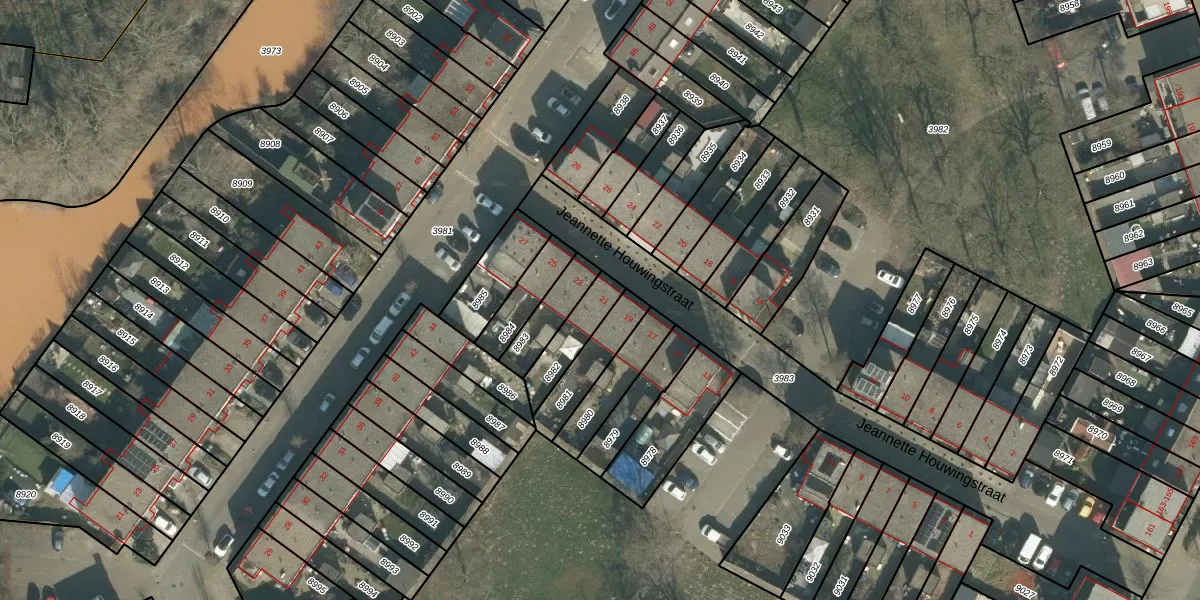 Jeannette Houwingstraat 21 is gelegen op kadastraal perceel BDA00H8982. Deze kadastrale aanduiding is uniek en wordt gebruikt door het Kadaster om eigendomsrechten en andere zakelijke rechten vast te leggen. Het perceel maakt onderdeel uit van de kadastrale gemeente Breda.