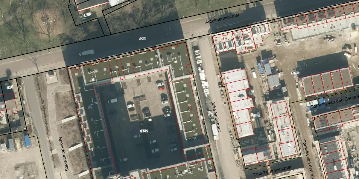 Joke Smitstraat 59 is gelegen op kadastraal perceel BDA00D11732. Deze kadastrale aanduiding is uniek en wordt gebruikt door het Kadaster om eigendomsrechten en andere zakelijke rechten vast te leggen. Het perceel maakt onderdeel uit van de kadastrale gemeente Breda.
