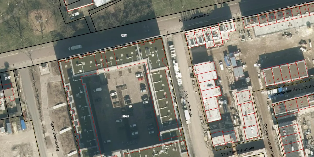 Het perceel waarop Joke Smitstraat 75 staat heeft een oppervlakte van 5832 m². Dit is een zeer groot perceel. De perceeloppervlakte wordt geregistreerd door het Kadaster. Gedetailleerde informatie over de maten van dit perceel kunt u vinden in het rapport Kadastrale kaart met maatvoering van Joke Smitstraat 75.