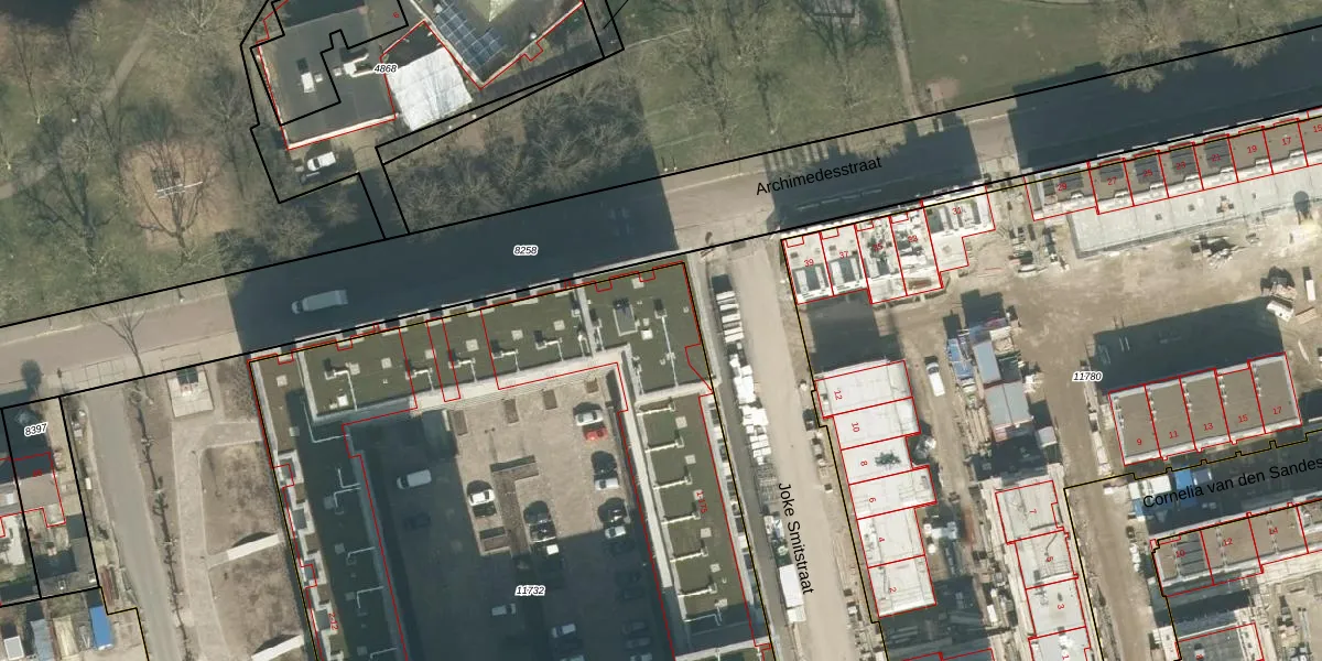 Het perceel waarop Joke Smitstraat 89 staat heeft een oppervlakte van 5832 m². Dit is een zeer groot perceel. De perceeloppervlakte wordt geregistreerd door het Kadaster. Gedetailleerde informatie over de maten van dit perceel kunt u vinden in het rapport Kadastrale kaart met maatvoering van Joke Smitstraat 89.