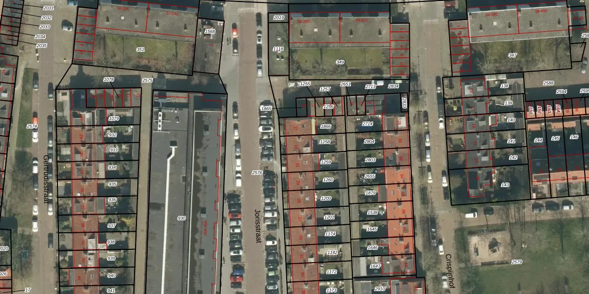 Het perceel waarop Jorisstraat 19 staat heeft een oppervlakte van 139 m². Dit is een middelgroot perceel. De perceeloppervlakte wordt geregistreerd door het Kadaster. Gedetailleerde informatie over de maten van dit perceel kunt u vinden in het rapport Kadastrale kaart met maatvoering van Jorisstraat 19.