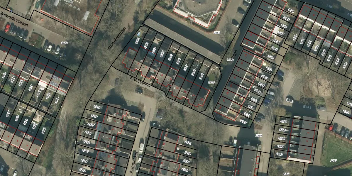 Gebruik de zoekbalk of klik op een perceel voor informatie over de adressen binnen dit perceel.