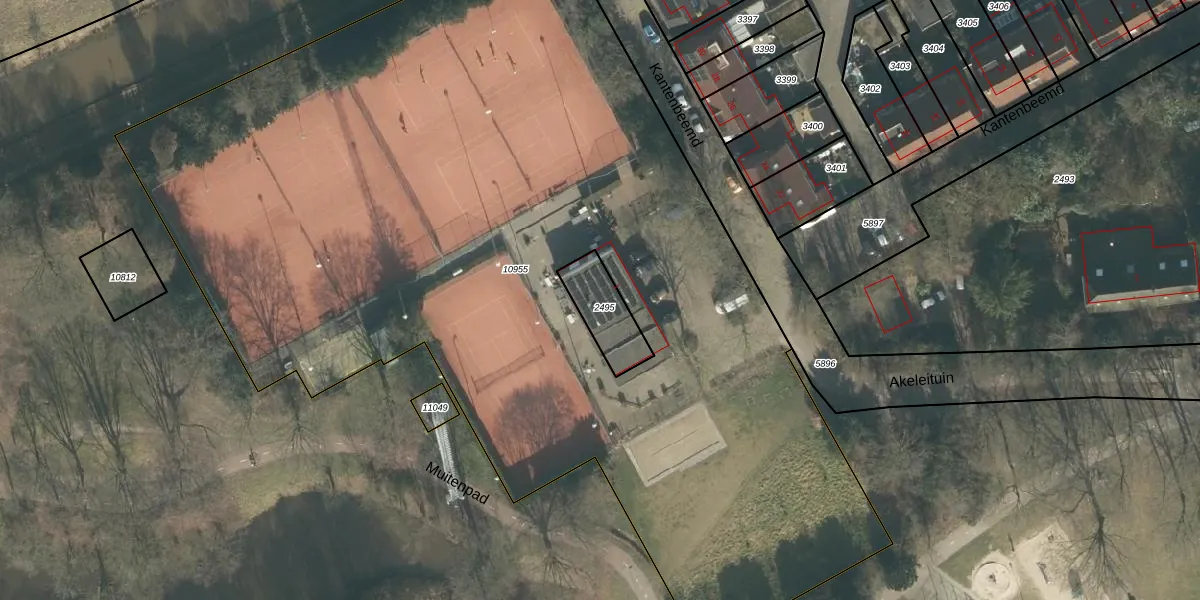 Gebruik de zoekbalk of klik op een perceel voor informatie over de adressen binnen dit perceel.