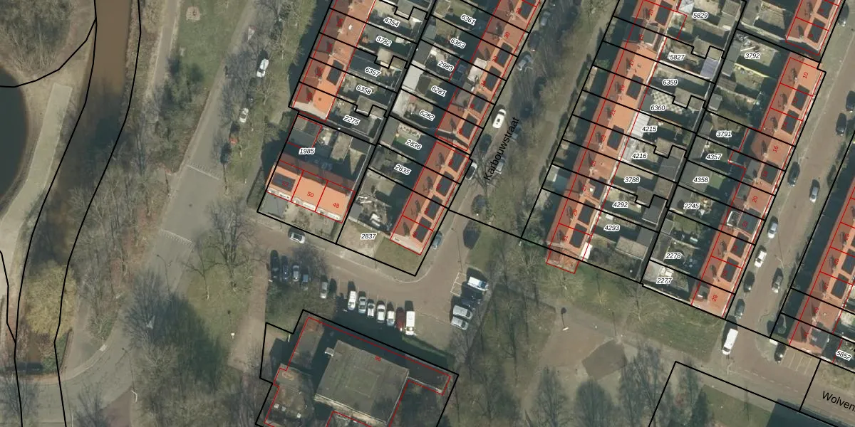 Het perceel waarop Karbouwstraat 44 staat heeft een oppervlakte van 380 m². Dit is een groot perceel. De perceeloppervlakte wordt geregistreerd door het Kadaster. Gedetailleerde informatie over de maten van dit perceel kunt u vinden in het rapport Kadastrale kaart met maatvoering van Karbouwstraat 44.