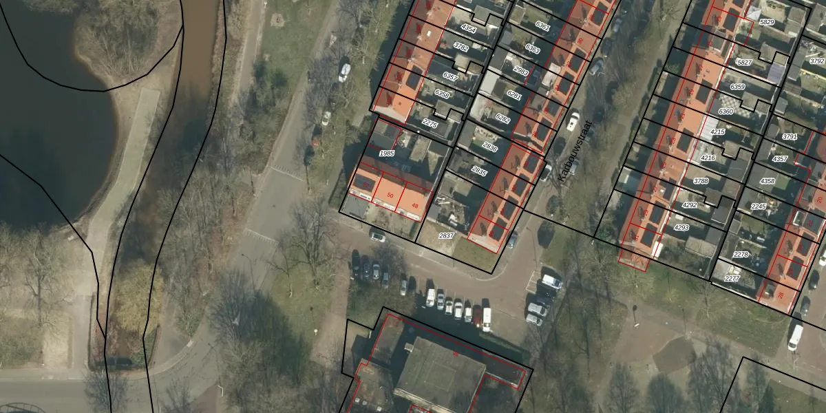 Het perceel waarop Karbouwstraat 48 staat heeft een oppervlakte van 488 m². Dit is een groot perceel. De perceeloppervlakte wordt geregistreerd door het Kadaster. Gedetailleerde informatie over de maten van dit perceel kunt u vinden in het rapport Kadastrale kaart met maatvoering van Karbouwstraat 48.