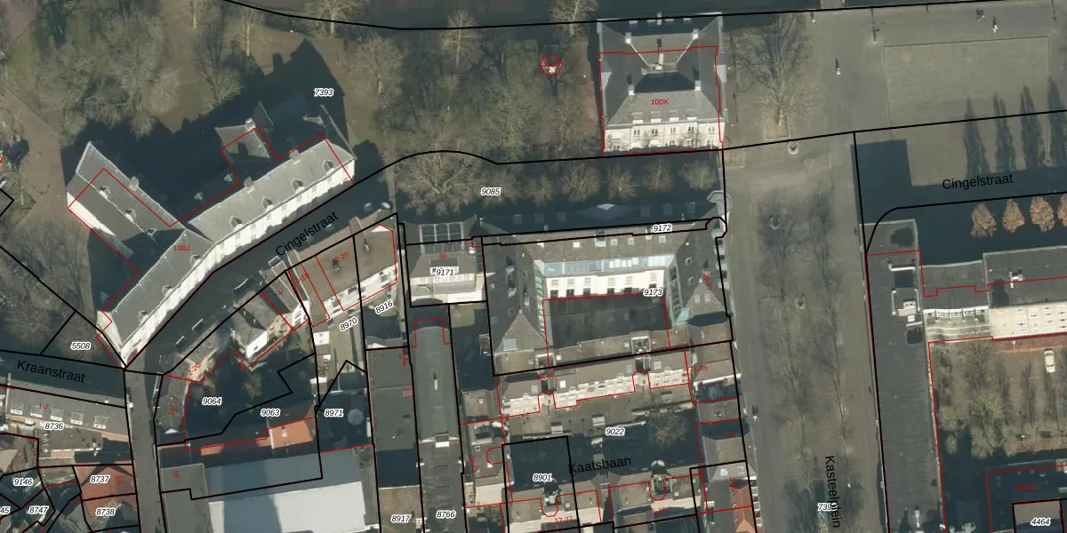 Het perceel waarop Kasteelplein 73 staat heeft een oppervlakte van 997 m². Dit is een groot perceel. De perceeloppervlakte wordt geregistreerd door het Kadaster. Gedetailleerde informatie over de maten van dit perceel kunt u vinden in het rapport Kadastrale kaart met maatvoering van Kasteelplein 73.