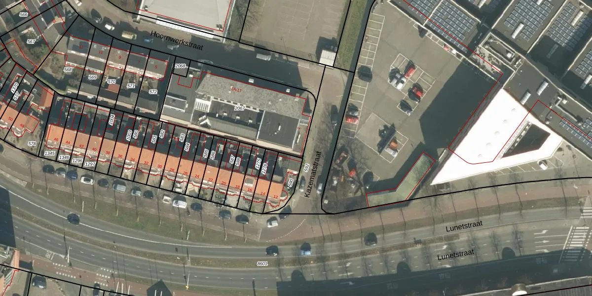 Het perceel waarop Kazematstraat 1 staat heeft een oppervlakte van 1090 m². Dit is een zeer groot perceel. De perceeloppervlakte wordt geregistreerd door het Kadaster. Gedetailleerde informatie over de maten van dit perceel kunt u vinden in het rapport Kadastrale kaart met maatvoering van Kazematstraat 1.