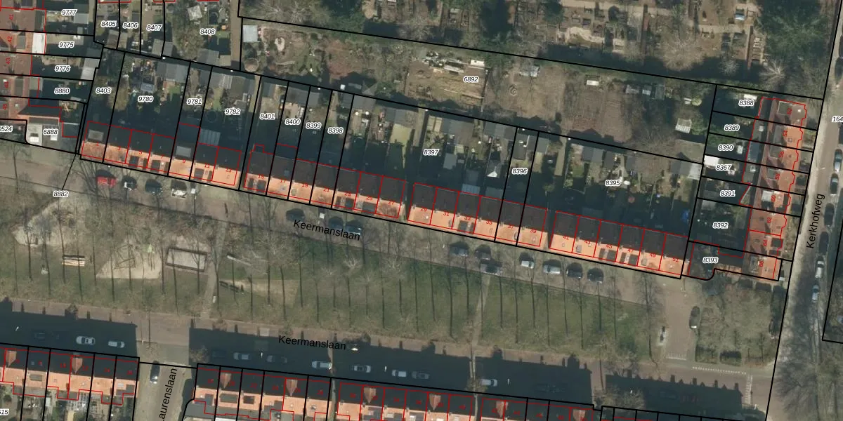 Het perceel waarop Keermanslaan 29 staat heeft een oppervlakte van 1110 m². Dit is een zeer groot perceel. De perceeloppervlakte wordt geregistreerd door het Kadaster. Gedetailleerde informatie over de maten van dit perceel kunt u vinden in het rapport Kadastrale kaart met maatvoering van Keermanslaan 29.