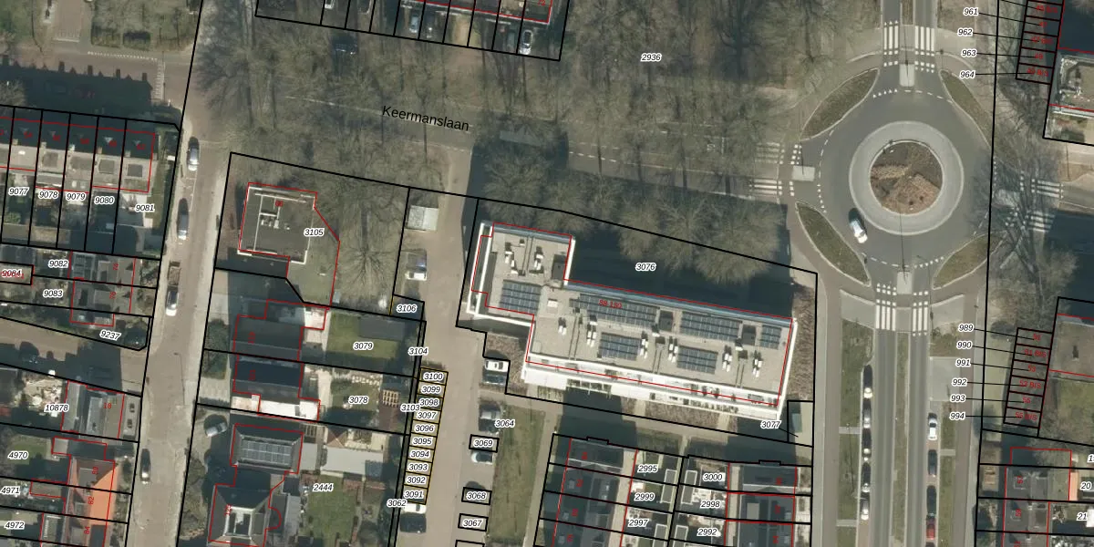 Het perceel waarop Keermanslaan 88 staat heeft een oppervlakte van 2055 m². Dit is een zeer groot perceel. De perceeloppervlakte wordt geregistreerd door het Kadaster. Gedetailleerde informatie over de maten van dit perceel kunt u vinden in het rapport Kadastrale kaart met maatvoering van Keermanslaan 88.