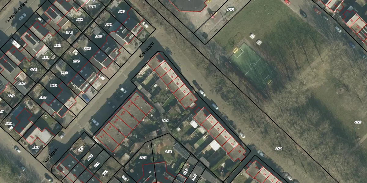 Het perceel waarop Keislagen 34 staat heeft een oppervlakte van 2677 m². Dit is een zeer groot perceel. De perceeloppervlakte wordt geregistreerd door het Kadaster. Gedetailleerde informatie over de maten van dit perceel kunt u vinden in het rapport Kadastrale kaart met maatvoering van Keislagen 34.