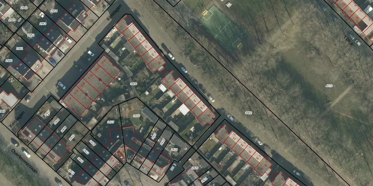 Het perceel waarop Keislagen 42 staat heeft een oppervlakte van 2677 m². Dit is een zeer groot perceel. De perceeloppervlakte wordt geregistreerd door het Kadaster. Gedetailleerde informatie over de maten van dit perceel kunt u vinden in het rapport Kadastrale kaart met maatvoering van Keislagen 42.
