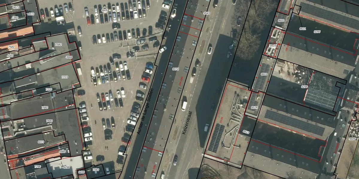 Het perceel waarop Keizerstraat 18-D staat heeft een oppervlakte van 2178 m². Dit is een zeer groot perceel. De perceeloppervlakte wordt geregistreerd door het Kadaster. Gedetailleerde informatie over de maten van dit perceel kunt u vinden in het rapport Kadastrale kaart met maatvoering van Keizerstraat 18-D.