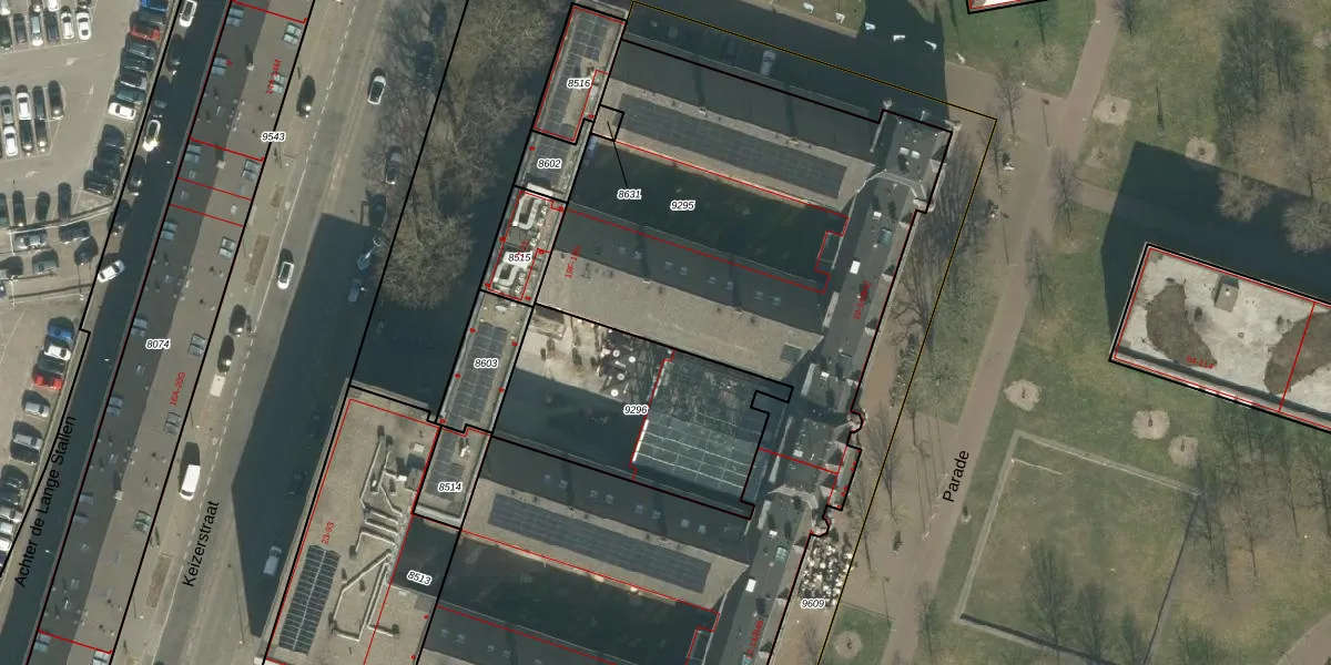 Het perceel waarop Keizerstraat 19-F staat heeft een oppervlakte van 4535 m². Dit is een zeer groot perceel. De perceeloppervlakte wordt geregistreerd door het Kadaster. Gedetailleerde informatie over de maten van dit perceel kunt u vinden in het rapport Kadastrale kaart met maatvoering van Keizerstraat 19-F.
