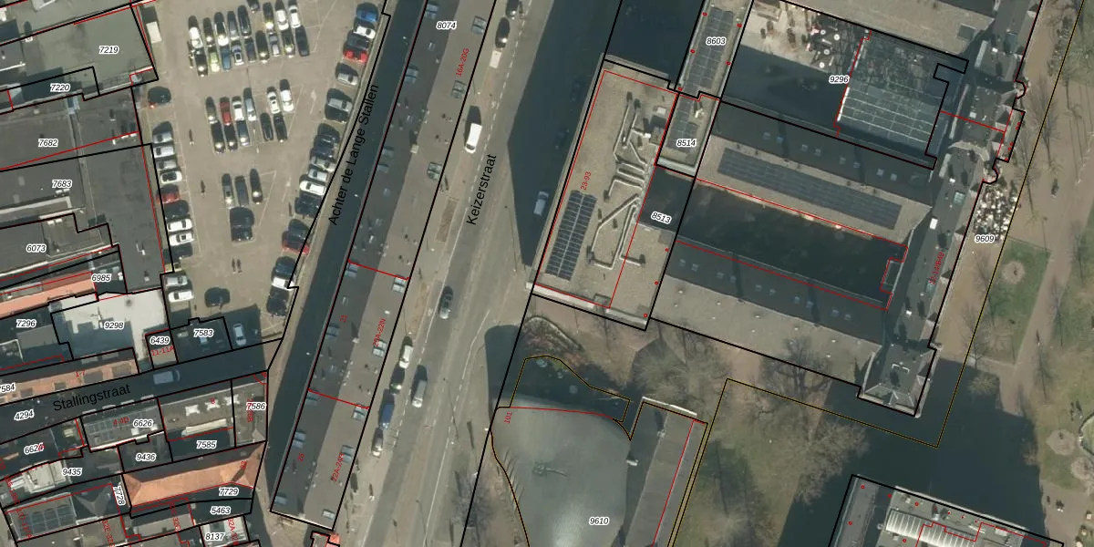 Het perceel waarop Keizerstraat 33 staat heeft een oppervlakte van 876 m². Dit is een groot perceel. De perceeloppervlakte wordt geregistreerd door het Kadaster. Gedetailleerde informatie over de maten van dit perceel kunt u vinden in het rapport Kadastrale kaart met maatvoering van Keizerstraat 33.