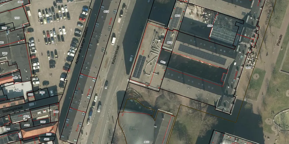 Het perceel waarop Keizerstraat 71 staat heeft een oppervlakte van 876 m². Dit is een groot perceel. De perceeloppervlakte wordt geregistreerd door het Kadaster. Gedetailleerde informatie over de maten van dit perceel kunt u vinden in het rapport Kadastrale kaart met maatvoering van Keizerstraat 71.